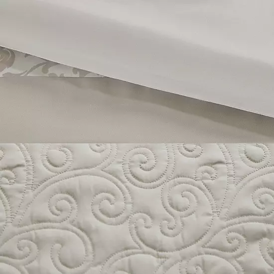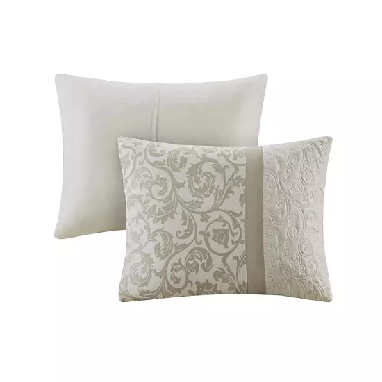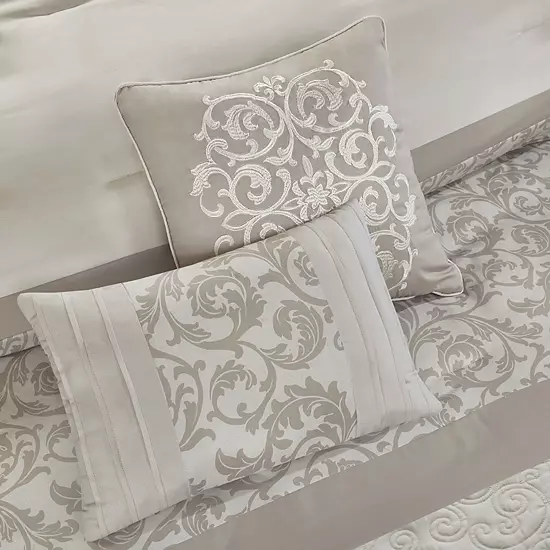 The 510 Design Lynda embroidered 8-piece comforter set introduces a graceful elegance to your bedroom decor.