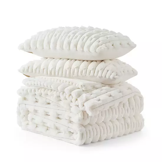 Transform your bedroom into a cozy retreat with the Bearpaw Jasper Faux Fur Comforter Set, featuring irresistibly plush faux fur that engulfs you in dreamy softness. The inviting texture and sleek design ensure a warm and stylish sanctuary, perfect for all-season relaxation.