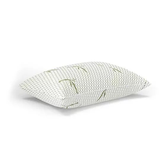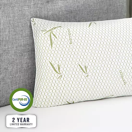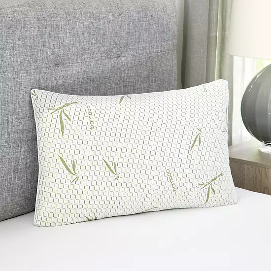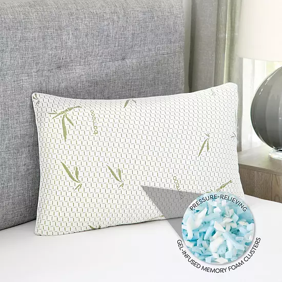 Enjoy custom support and refreshing comfort when resting on this BodiPedic memory foam cluster bed pillow with rayon from bamboo infused cover.
