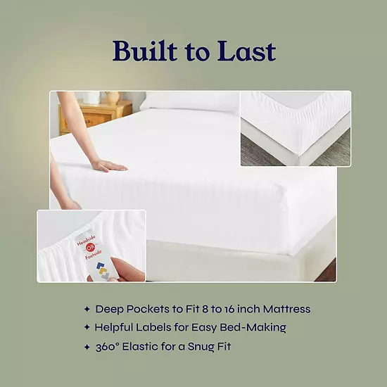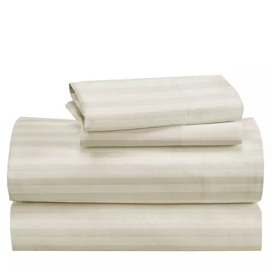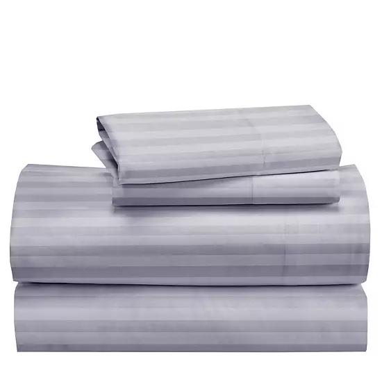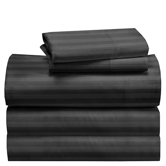Transform your bed with our 500-thread count, 100% cotton sheets featuring a woven damask stripe. The silky sateen weave offers a smooth, breathable feel that keeps you cool and comfortable, while the durable cotton fabric provides a luxurious sleep experience night after night.