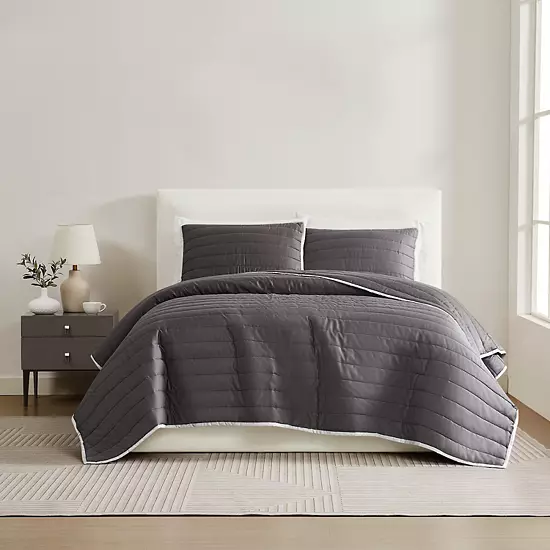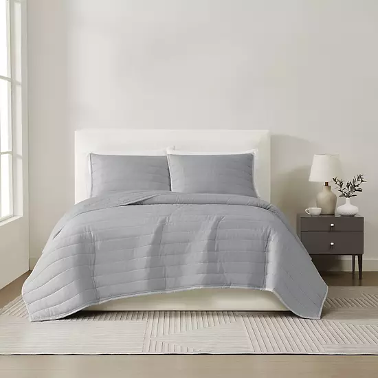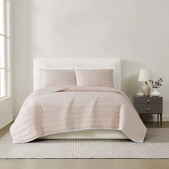 This Christian Siriano NY® Cotton Sateen Blush Quilt Set offers a silky-smooth feel and a lustrous sheen that exudes elegance.