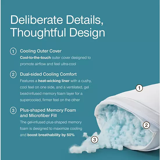 - Proprietary blend of virgin plus-shaped cooling gel infused memory foam and fiber promotes increased airflow and coolness