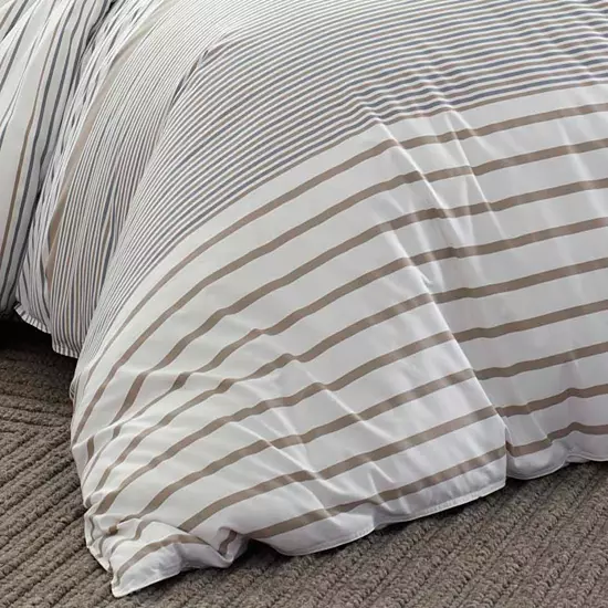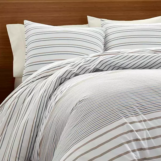 Create your personal escape and kick back in style with this smartly tailored all-cotton duvet set in neutral shades of sandstone, chrome, and ivory.