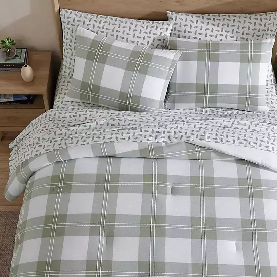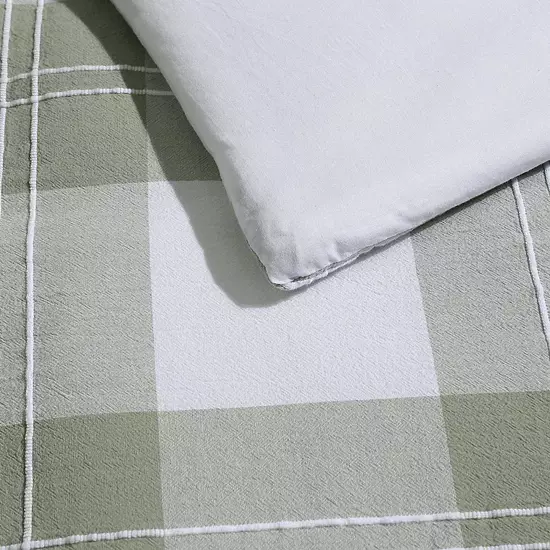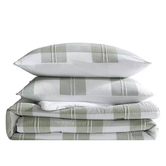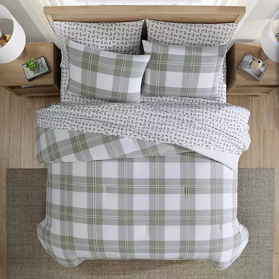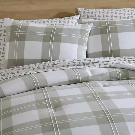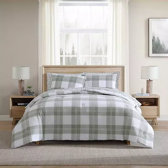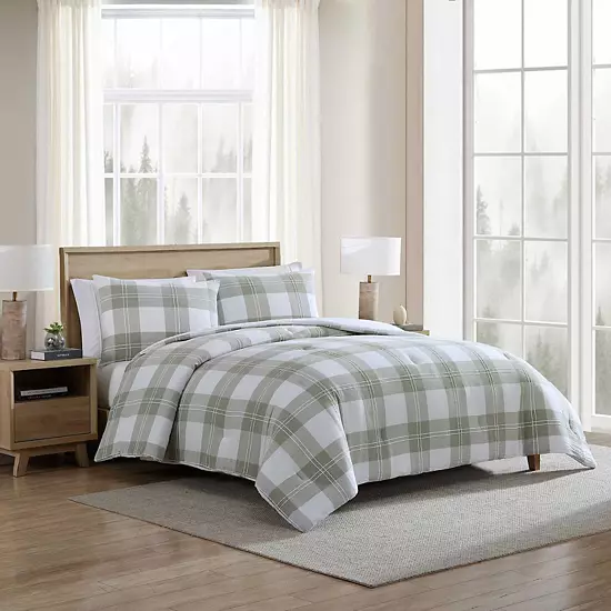 Transform your space with this Eddie Bauer Mountain Embroidery Plaid Green King Comforter Set.