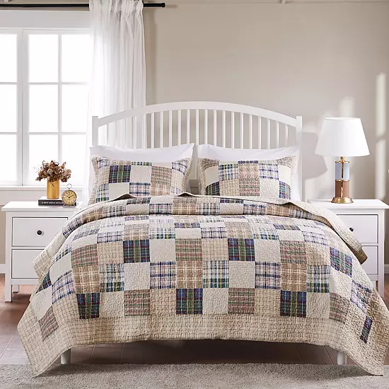 Add a sense of warmth to your guest bedroom with the soft tones and casual pattern of this Oxford quilt set. In beige.