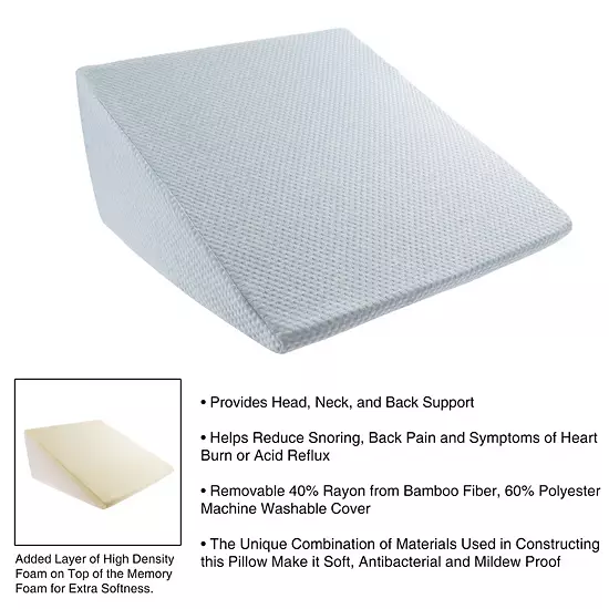 - The gradual incline on the wedge pillow provides supportive positioning for back and side sleepers, while also helping to relieve nighttime snoring, acid reflux, and heartburn, as well as pain in the neck, back, and shoulders.