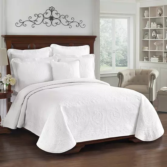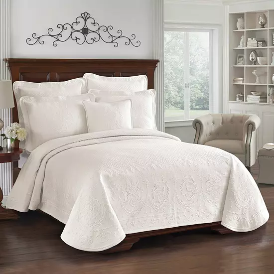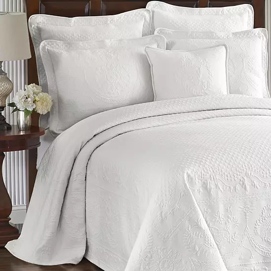 Add 18th century England charm to your bedroom with this Historic Charleston Charles matelassé coverlet.