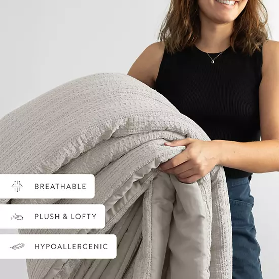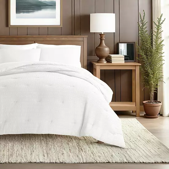 Elevate the look and feel of your space with this Home Collection All Season Down-Alternative Waffle Textured Comforter Set with Sham.