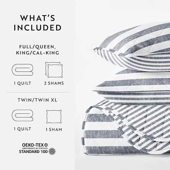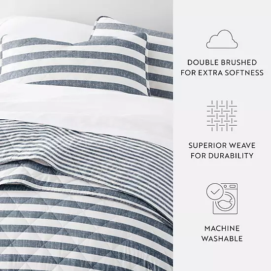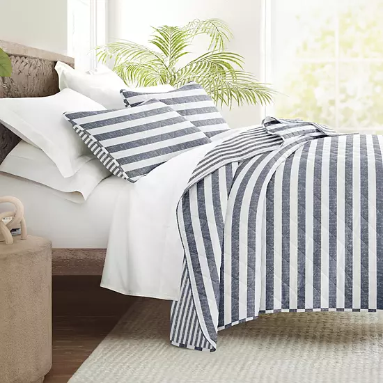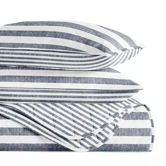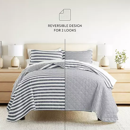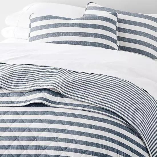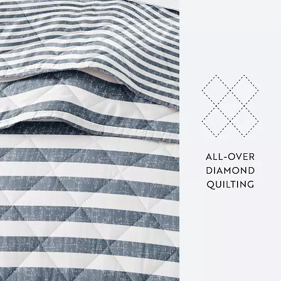 Add some beautiful style to your bedroom space with the Classic Stripe reversible all season down-alternative quilt set from Home Collection.