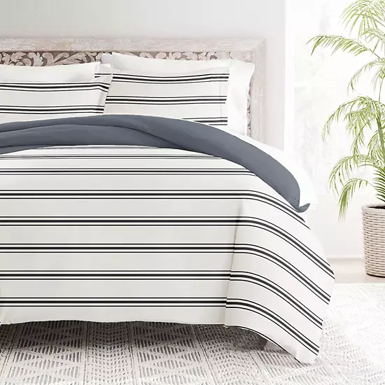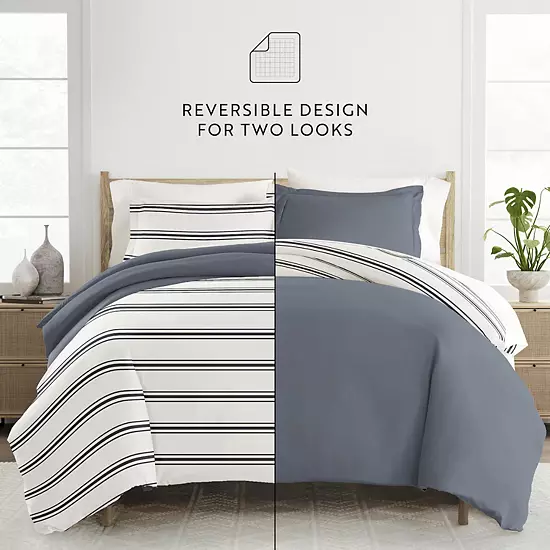 Elevate the look of your existing bed with this Home Collection Premium Ultra Soft Desert Stripe Reversible Duvet Cover Set.
