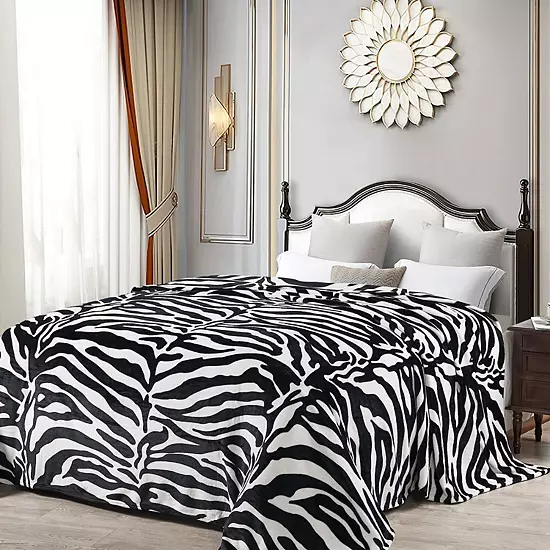 The bold black-and-white zebra pattern brings a modern, trendy look to your bedroom, adding a striking accent to your decor.
