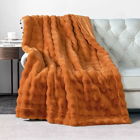 Wrap yourself in warmth and comfort with this Home Soft Things bubble textured faux fur throw blanket.