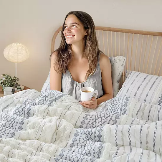 - Cotton shams reiterate the designs of the comforter for a stunning coordinated look