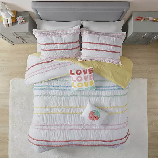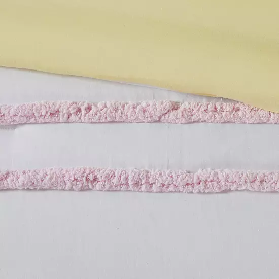 The Intelligent Design Mackenzie cotton comforter set with chenille trim brings a simple and charming update to your kid’s room.
