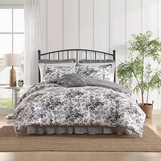 Transform your space with this Laura Ashley Toile Delight Grey Comforter & Sham Bonus Set.