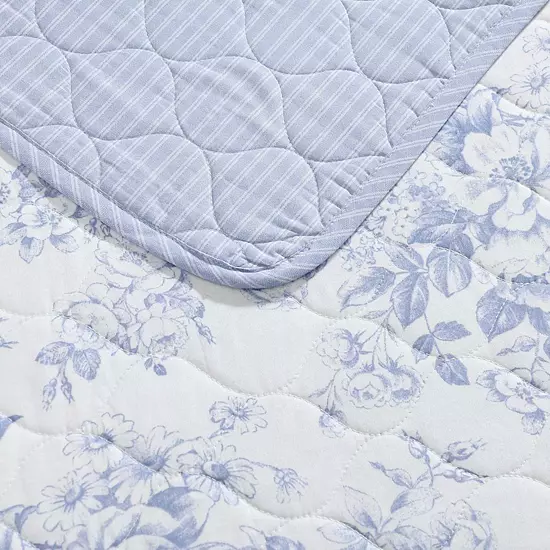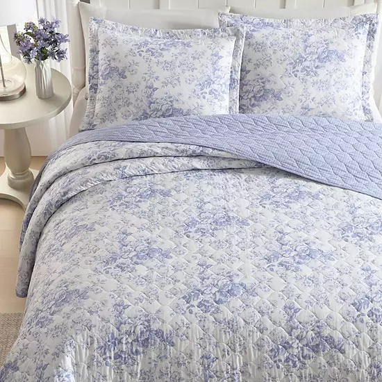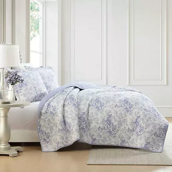 Style you’ll love. The Laura Ashley Toile Delight quilt and sham set in a soft purple colorway adds a soothing and elegant touch to any bedroom.