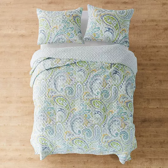 Illuminate the look of your existing bedroom decor by adding this Levtex quilt set to your bed.