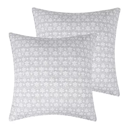 - This reversible quilt features a scenic Christmas holiday in the woods in an sketch, line drawing design on the front, reversing to a small white snowflakes on a grey ground on the back