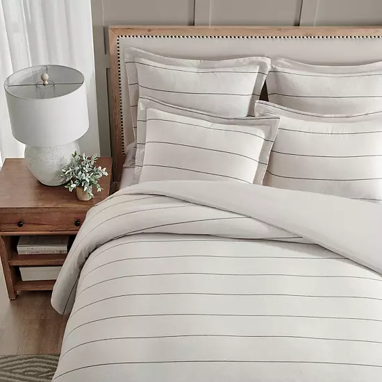 Refresh the look of your bedroom or guest room with this Levtex Home Leo Stripe Black duvet cover set with euro shams.
