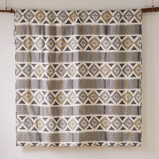 This Santa Fe quilt or sham will give your bedroom a western, chic update. In gray, gold.