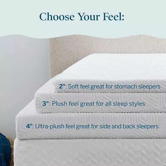 - Three inches of memory foam adds a plush layer of comfort to your mattress; also available in a soft 2-inch profile and ultra-plush 4-inch profile