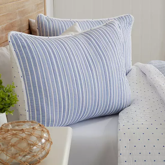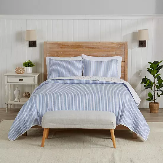 Easily add a fresh look to your existing bed with this stylish and timeless Madelinen Marcie Tiny Stripes Quilt Set with Shams.