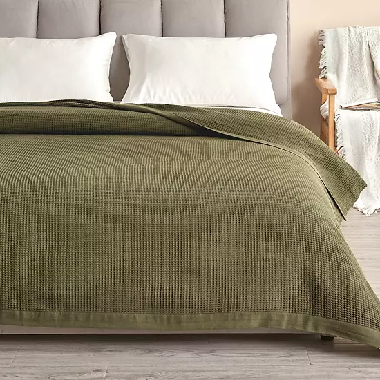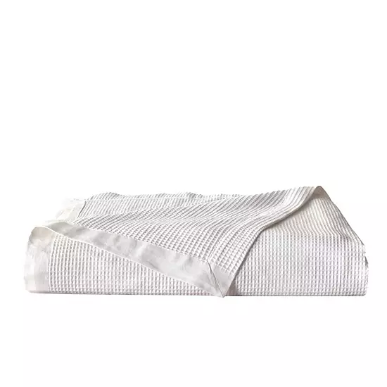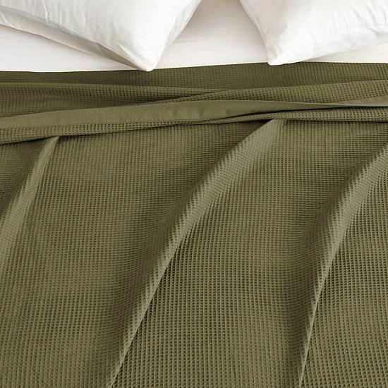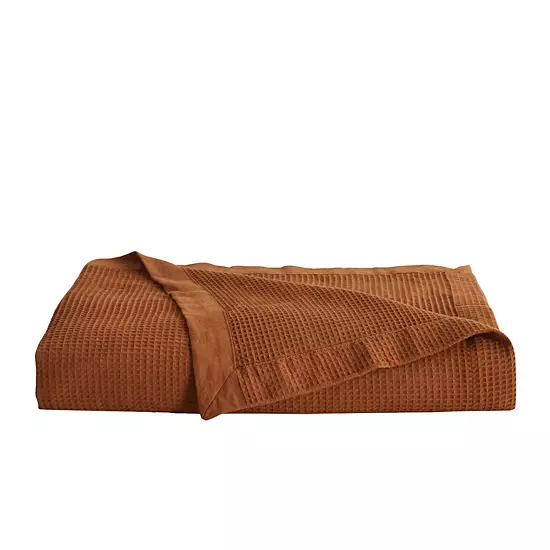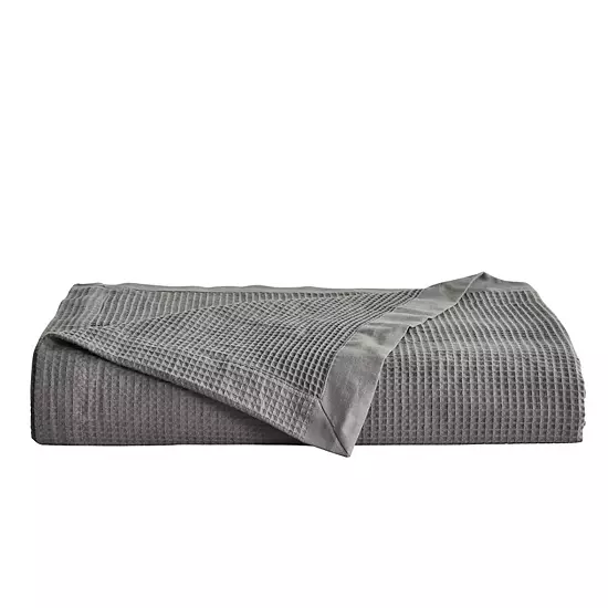 Get comfy with this soft and luxurious Madelinen waffle weave knit blanket.