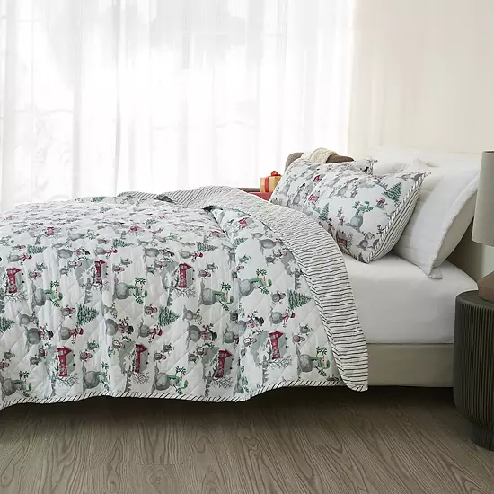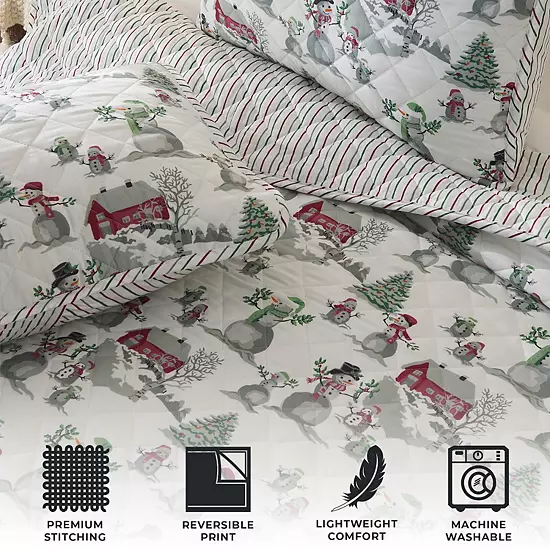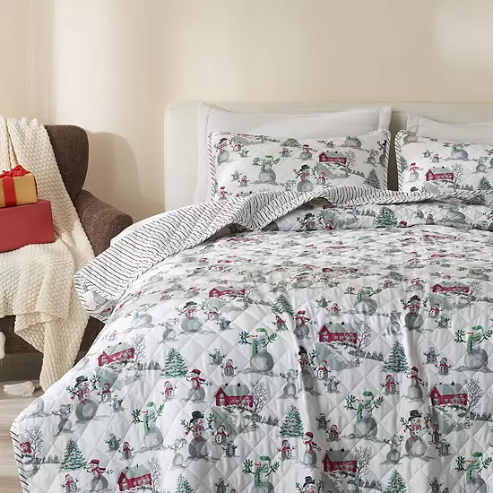 Turn any bedroom into a winter wonderland with this snowman print quilt set from Madelinen.