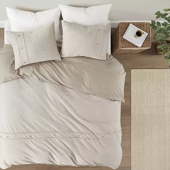 The Madison Park Dover 3 piece organic cotton duvet cover set offers a refreshing update to your bedroom.