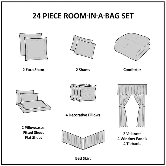 The Madison Park Essentials Cadence 24 Piece Room in a Bag provides a total makeover for your bedroom decor.