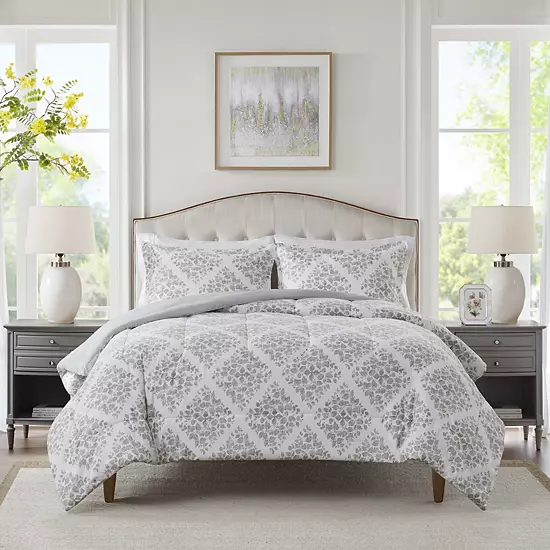 Drift off to sleep in this timeless Madison Park Essentials Comforter Set.