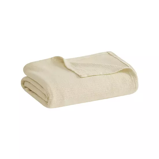 Add another layer of comfort to your bedding with this Madison Park Freshspun Basketweave bed blanket.