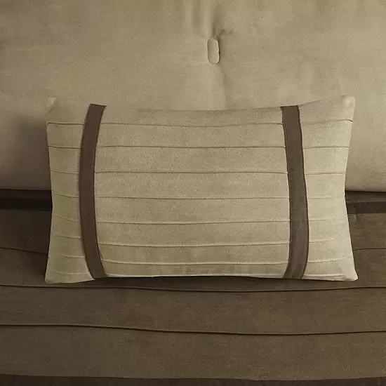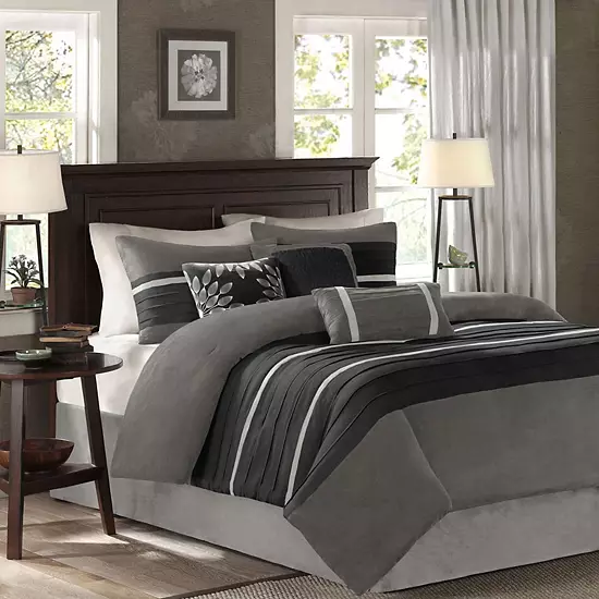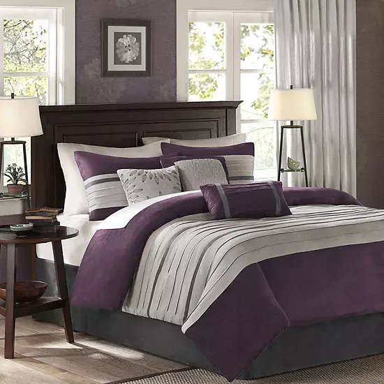 The rich hues and pieced design of this Madison Park Teagan comforter set add chic sophistication to your bedroom.