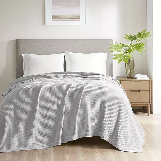 The Madison Park Waffle Weave Bed Blanket offers an added layer of warmth and comfort to your bed or couch.