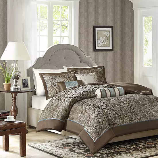 Pretty, pretty paisley. This Madison Park Whitman duvet cover set is just your style. Striped accents and a jacquard paisley pattern lend instant charm to your home.