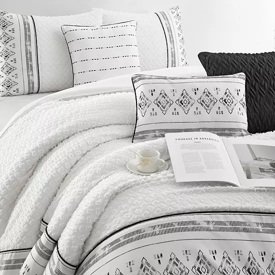 Drift into a peaceful slumber with this Nanshing Gordinia 7-piece geometric comforter set.