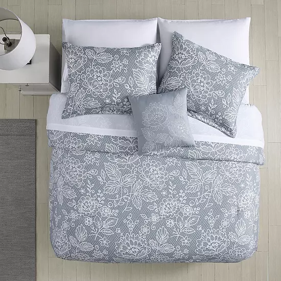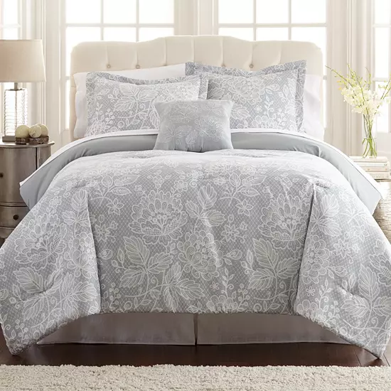 Complement the look of your bedroom decor and add beautiful style with this Olivia Printed Reversible bedding set. In gray.