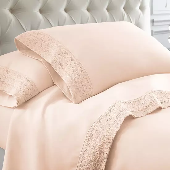You’ll enjoy the elegant look this Pacific Coast Textiles crochet lace sheet set brings to your bed.
