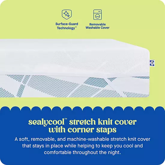 - SealyCool™ Stretch Knit Cover stays in place while helping to keep you cool and comfortable through the night