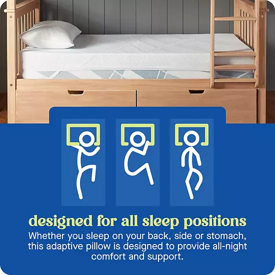 - Whether you sleep on your back, side or stomach, this adaptive pillow is designed to provide all-night comfort and support