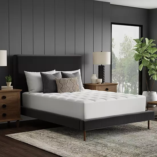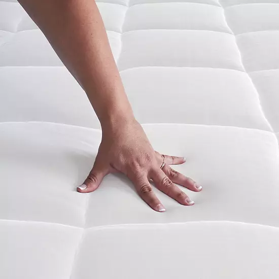 Indulge in a luxurious sleep experience with this plush mattress pad from Sealy, expertly crafted to envelop your bed in an irresistibly soft embrace. Enjoy the added comfort and support of its snug fit, transforming your mattress into a serene sanctuary for restful nights and rejuvenating mornings.