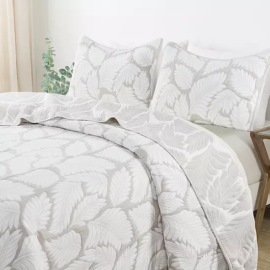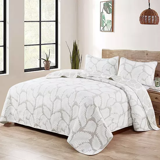 Give your bedtime routine a luxurious upgrade with this Serenta Matelasse Jacquard Leaf Print Quilt with Shams.