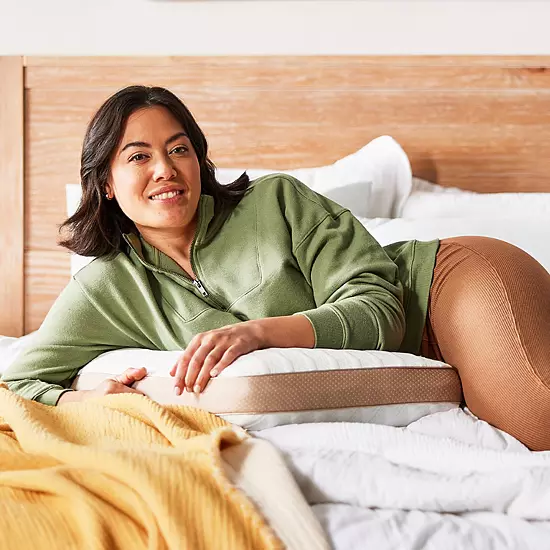 Customize your sleep with the 2-in-1 feel of this Serta® Align & Revive Gel Memory Foam Pillow. Firm support on one side and softer support on the other makes it easier to find the comfort you need for deep sleep.