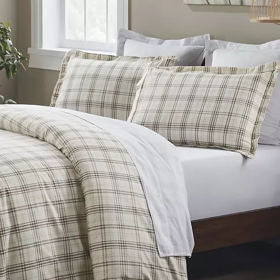 Give your room a refresh with this SUPERIOR plaid flannel cotton classic farmhouse duvet cover set.