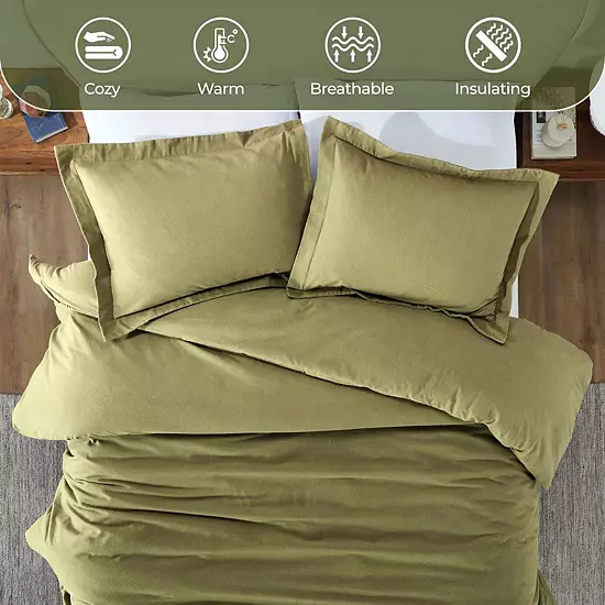 Elevate your style with the distinctive look of this SUPERIOR Rome flannel cotton solid duvet cover set.