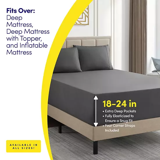 - Fitted sheets fits most mattresses up to 21-in. deep