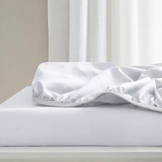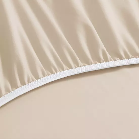 - Fully elasticized fitted sheet with extra-strength elastics for a secure fit