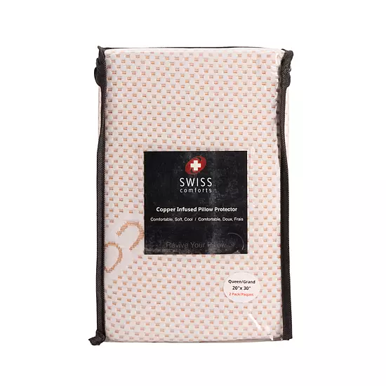 Recommended for sensitive skin, these Swiss Comforts copper-infused pillow protectors are soft and absorbent and protect against dust and mites.