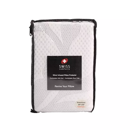 These Swiss Comforts silver-infused pillow protectors instantly transform every pillow into a bed paradise, providing a more comfortable night’s sleep.