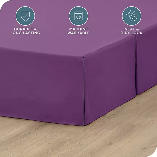 Change up the look of your restful retreat! Our bed skirt is a great way to conceal box springs, frame and underbed storage while also reducing underbed dust and mess. This piece is crafted from wrinkle and fade-resistant microfiber and features a 15 drop on three sides. Our bed skirt comes in many colors and sizes to match any existing bedding. Machine wash in cold water with similar colors, tumble dry low. Do not bleach.